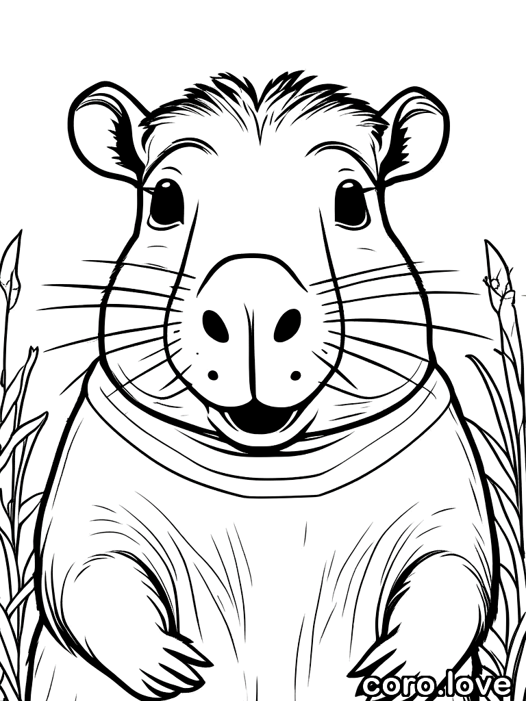 cute capybara, laughing, ColoringBookAF, coloring book, isolated on white, simple minimal design, no decorations, no borders
