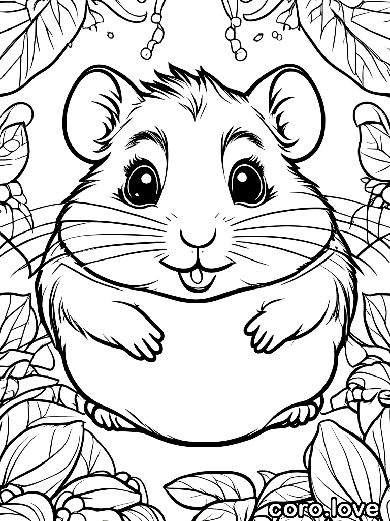 chubby hamster, lovable, friendly face, ColoringBookAF, coloring book